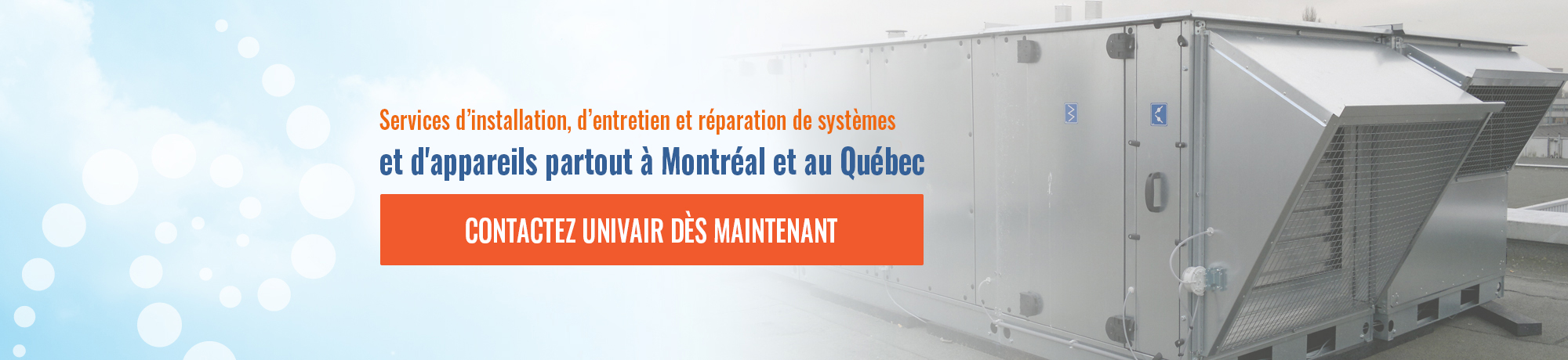 Univair climatisation met à votre disposition une équipe de réparation pour tout problème de fonctionnement de vos appareils. Pour obtenir une soumission ou pour des informations n’hésitez pas à nous contacter.